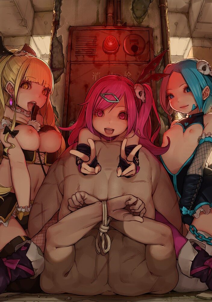 ロリ系の可愛い女の子が大勢の裸の男達に囲まれて犯せれてエグい二次元のエロ画像